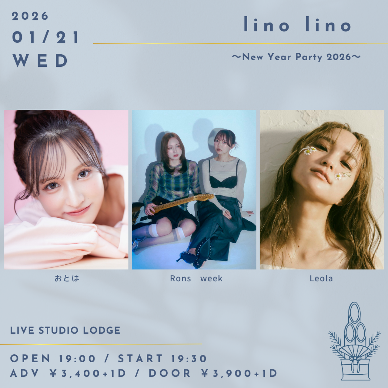 Leola 2026.01.13 【Leola】1/21(水)開催『lino lino 〜New Year Party 2026〜』出演!! 1/21(水)にLIVE STUDIO LODGEにて開催される『lino lino 〜New Year Party 2026〜』にLeolaの出演が決定しました!! 是非チェックしてください!! 『lino lino 〜New Year Party 2026〜』 【日時】 2026/1/21(水) OPEN 19:00 / START 19:30 【会場】 LIVE STUDIO LODGE 〒151-0053 東京都渋谷区代々木1丁目30-1 代々木パークビル B1F 詳細はこちら