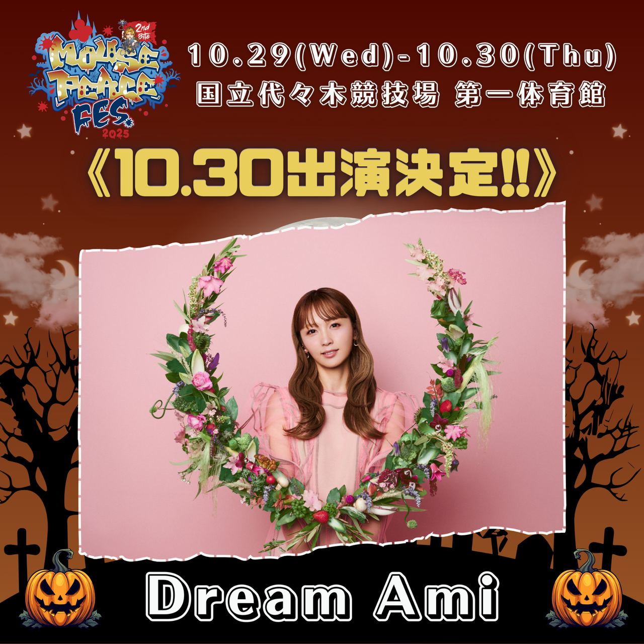 Dream Ami 2025.09.28 【Dream Ami】10/30(木)開催『MOUSE PEACE FES. 2025 2nd Bite』に出演! 10/30(木)に国立代々木競技場 第一体育館にて開催される『MOUSE PEACE FES. 2025 2nd Bite』にDream Amiの出演が決定しました! 是非チェックしてください。 『MOUSE PEACE FES. 2025 2nd Bite』 【日時】 2025/10/30(木) 【会場】 東京・国立代々木競技場 第一体育館 【公式HP】 https://mousepeacefes.jp/