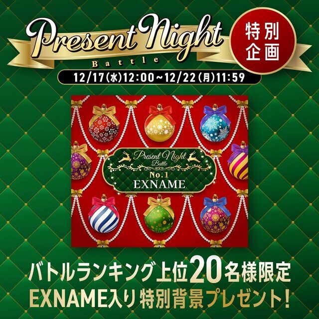 バトルランキング上位20名に、EXNAME入りの特別背景をプレゼント!