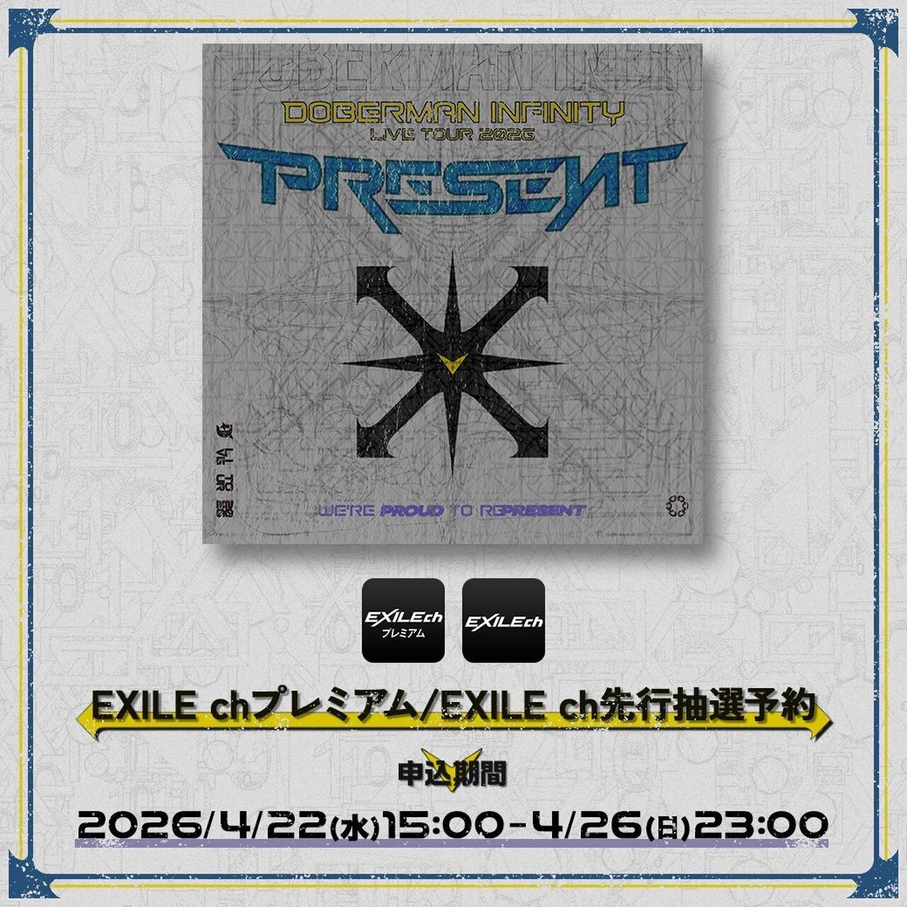 【4/22(水)15:00よりEXILE chプレミアム/EXILE ch先行抽選予約スタート!!】『DOBERMAN INFINITY LIVE TOUR 2026 "PRESENT"』開催!